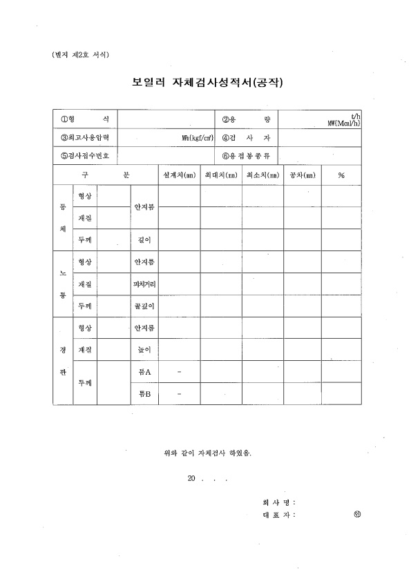 20 보일러 제조(용접 구조) 검사자체 기록서