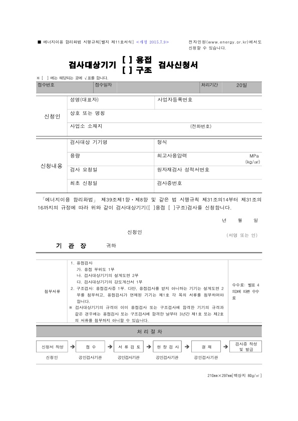 ✔검사대상 기기 (용접, 구조) 검사 신청서